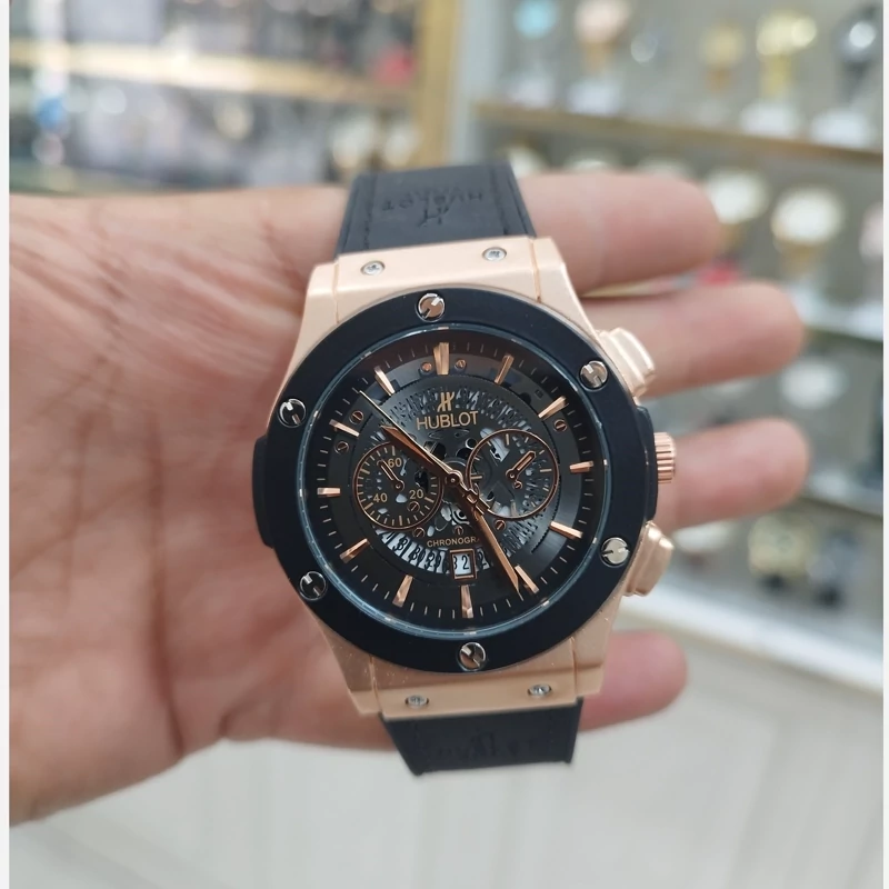 ساعت هابلوت مردانه جدید و خاص تقویم دار طرح 3موتور بند سیلیکونی پشت پیچ همراه باجعبه رایگان وباتری اشانتیون