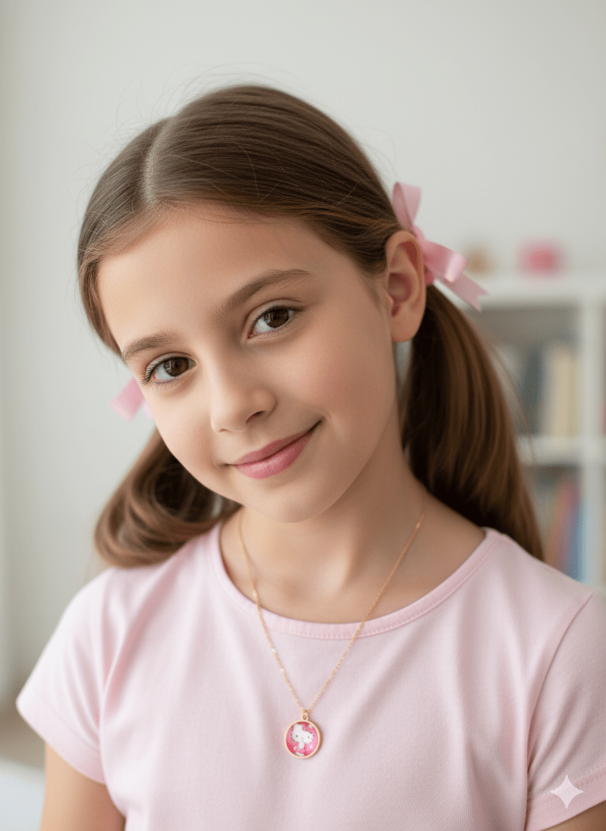 گردنبند دخترانه کیتی پلاک کیتی همراه با زنجیر 45 سانتی رنگ ثابت استیل
