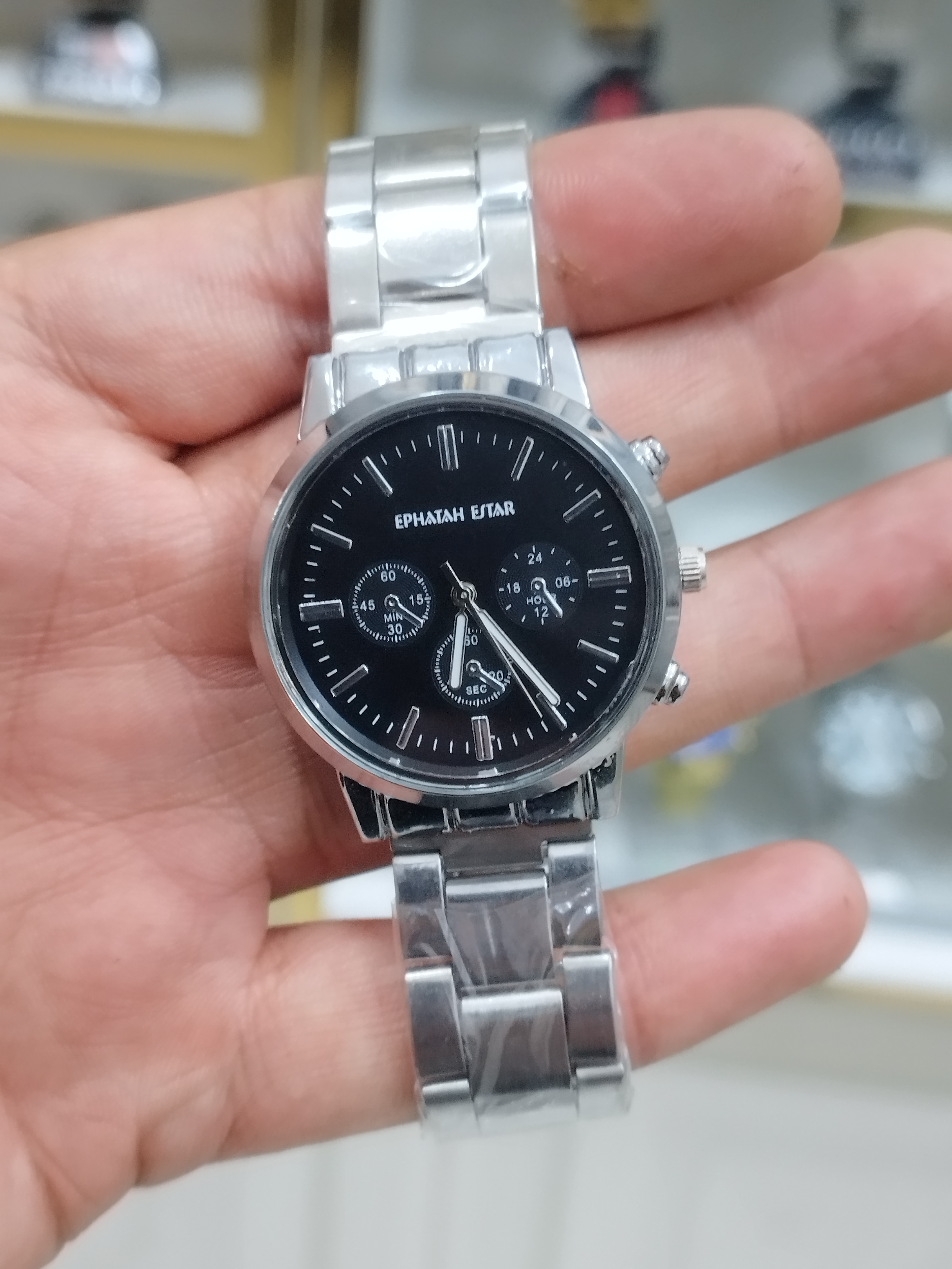 ساعت مردانه استیل طرح 3موتور رنگ ثابت بند استیل قفل فشاری همراه با باتری اشانتیون
